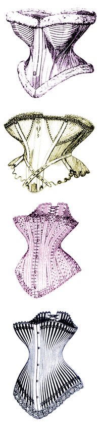 Корсеты изменяли фигуры, превращая талии в «осиные» и бюсты в пышные.
